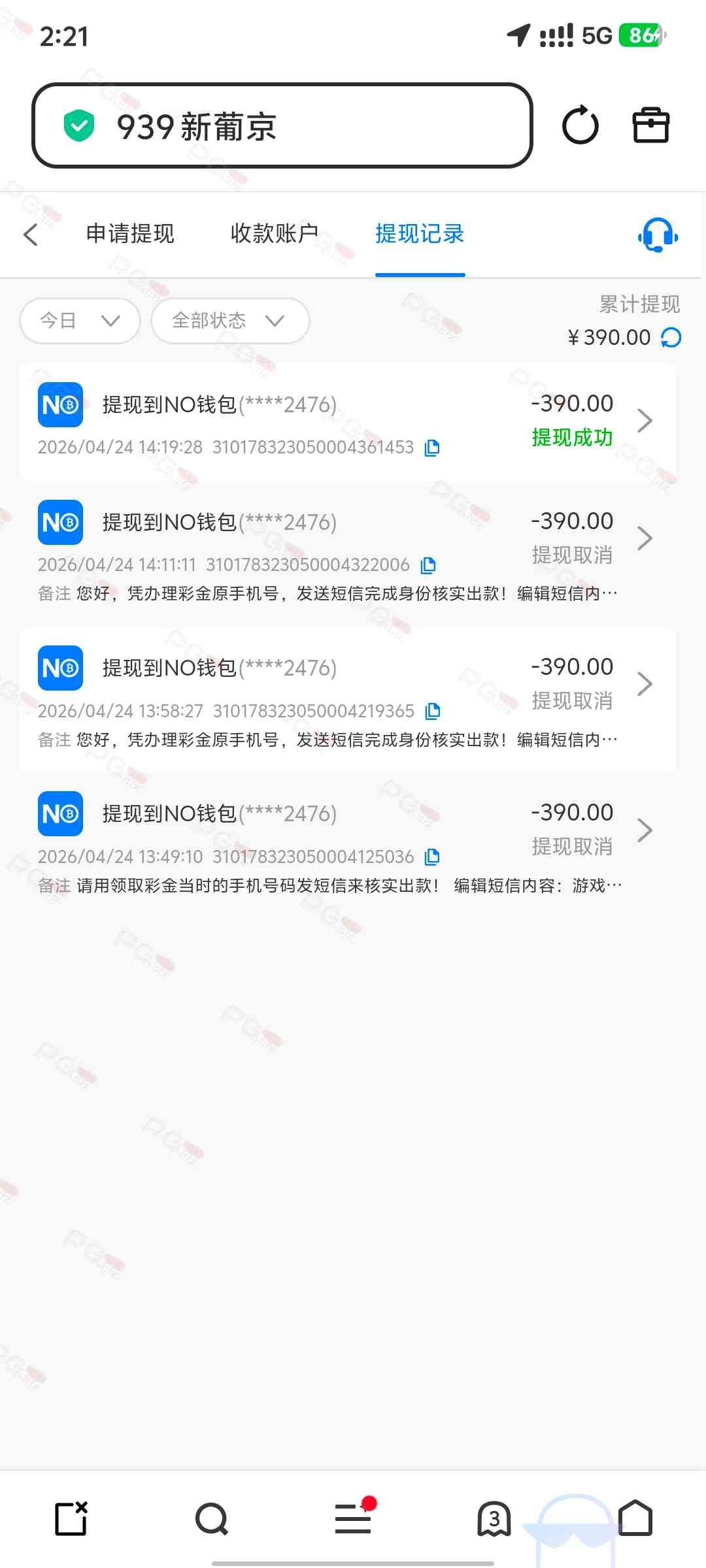 DING辉 到账了,不黑就是要发短信验证,可能是撸狗太多了