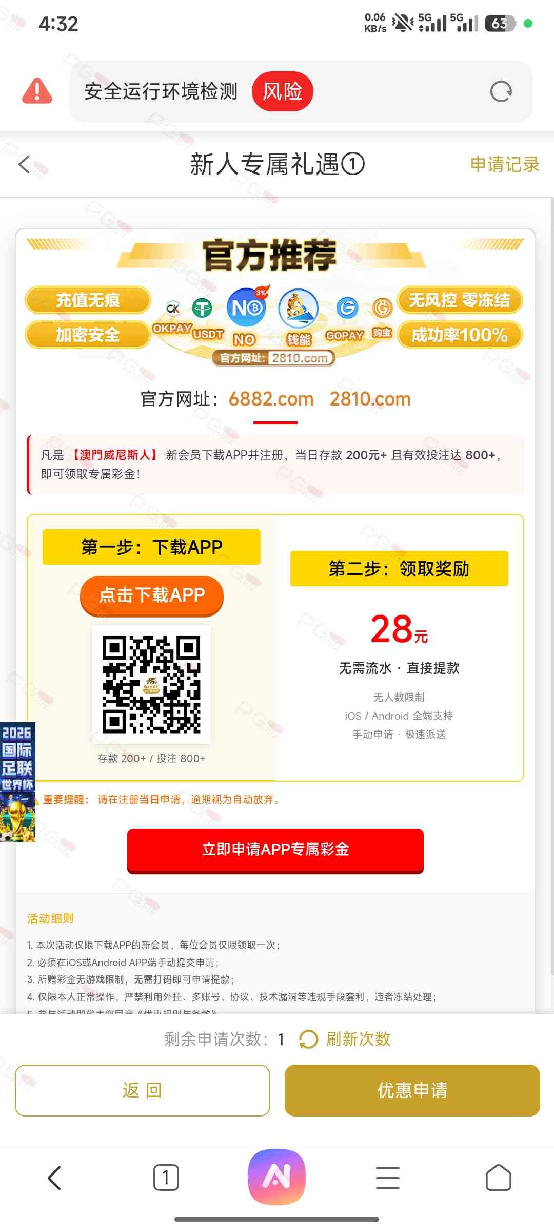 注册优惠里自助领取,500才能出,我没有打出来点击进入威尼斯人2810